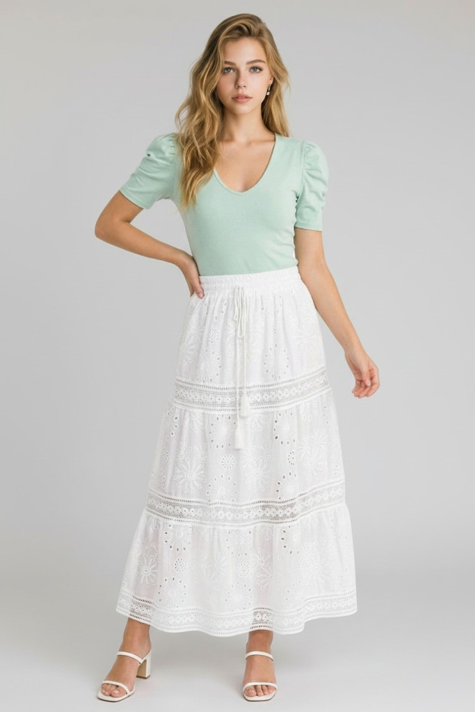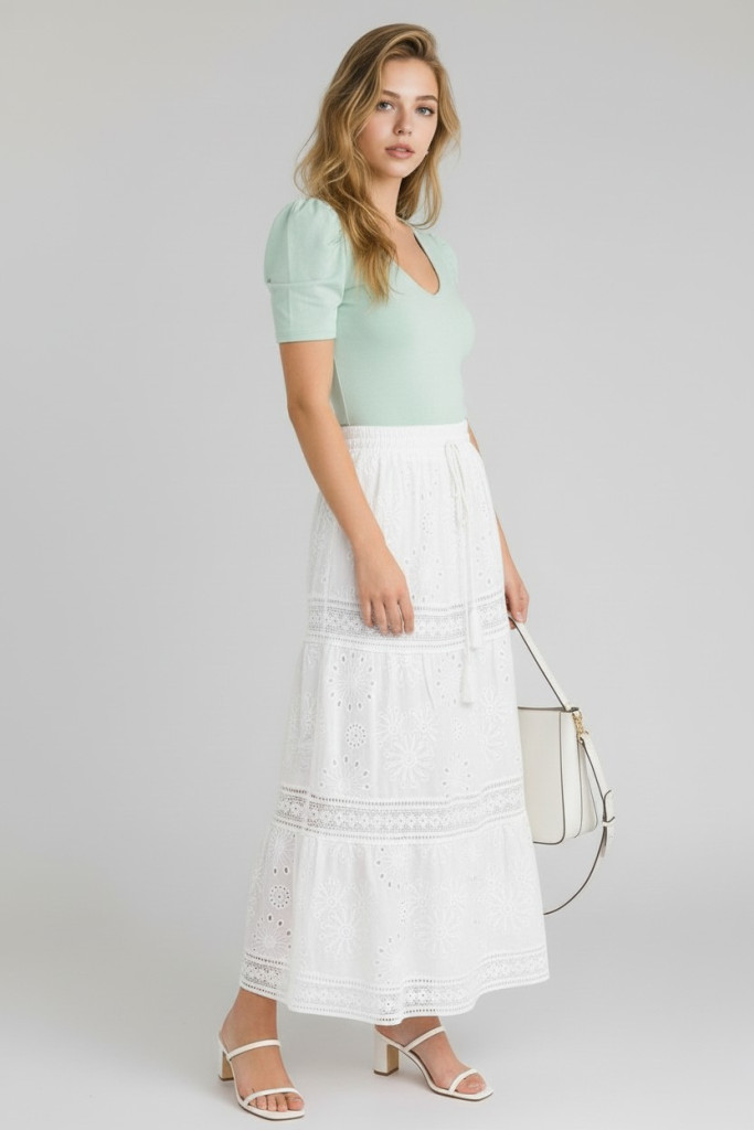 Különleges fazonú, csupa madeira maxi szoknya a forró nyári napok kényelmes viselete.