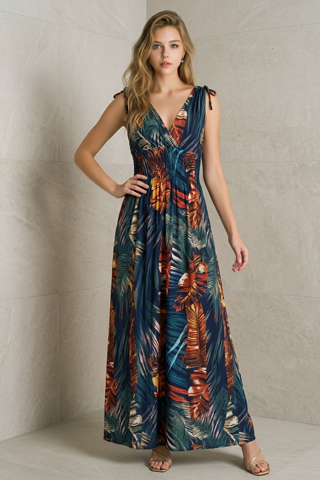 ÚJ AMINA levélmintás maxiruha - kék/vörös