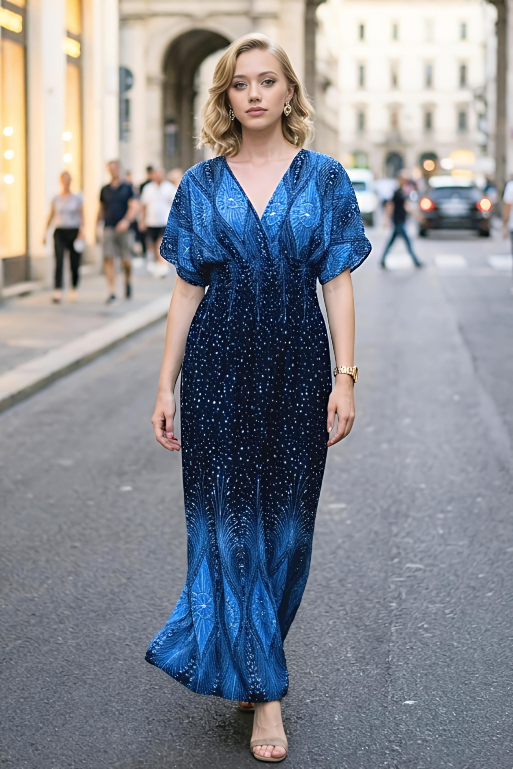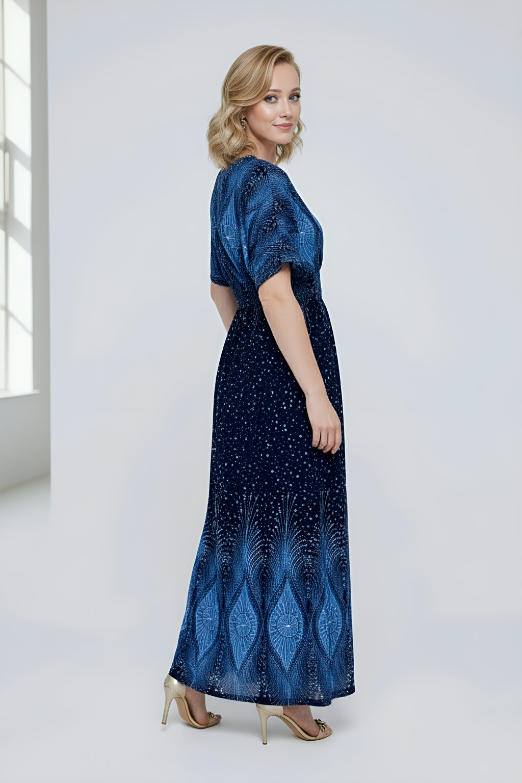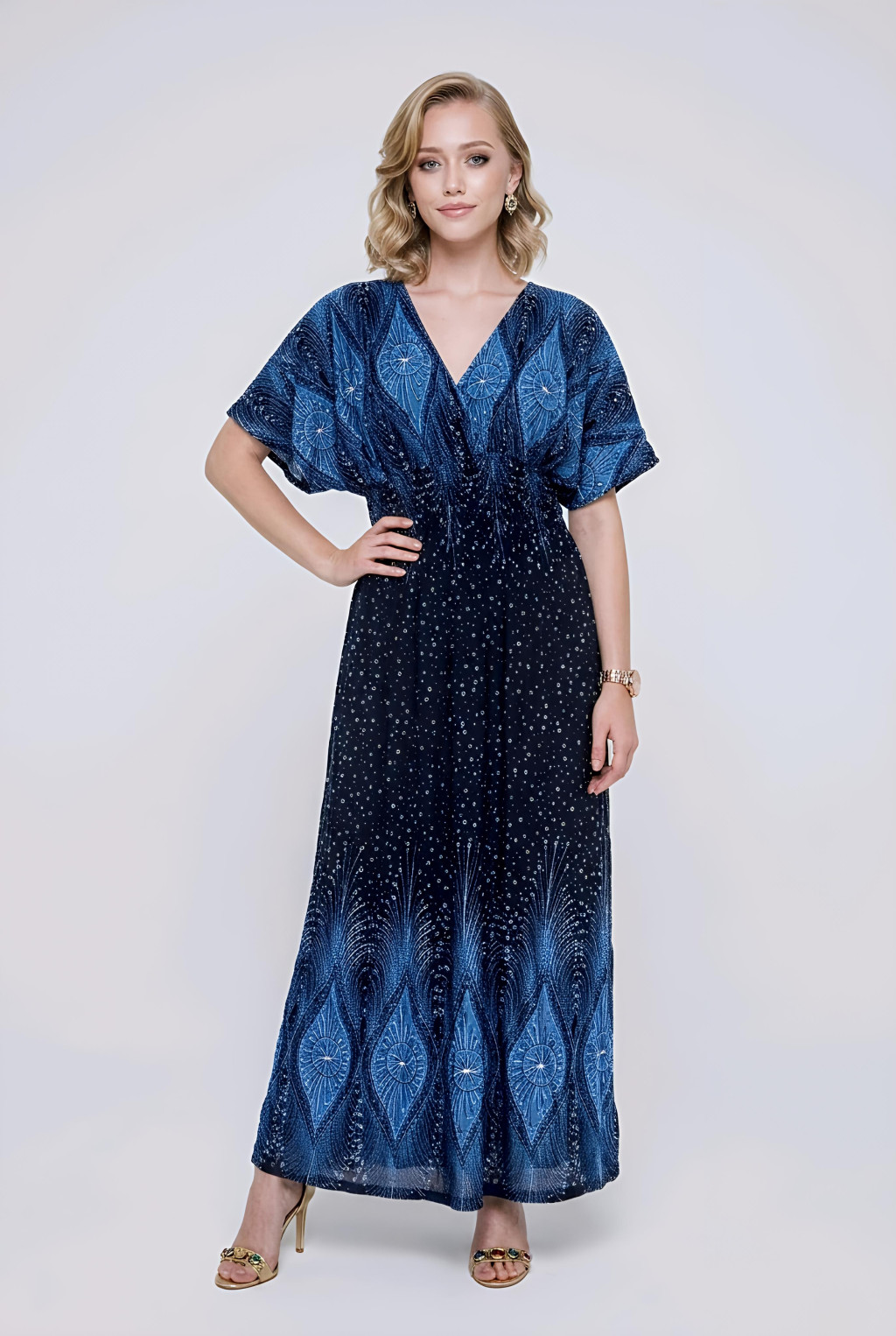 ANNI bordűrmintás maxiruha - kék