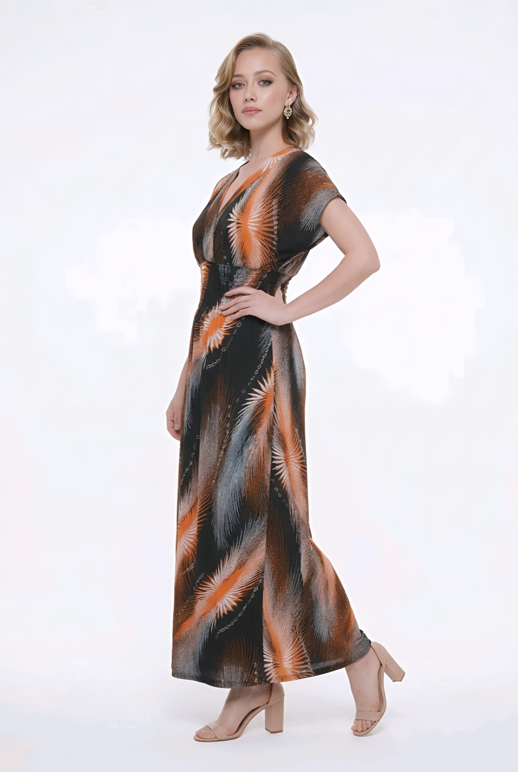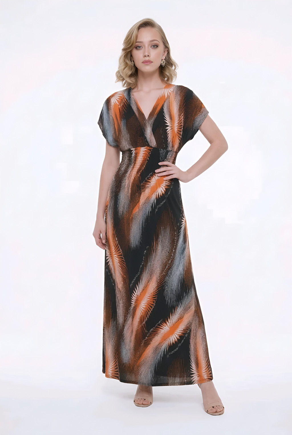 ÚJ ANNI ejtett vállú maxiruha - narancs/fekete