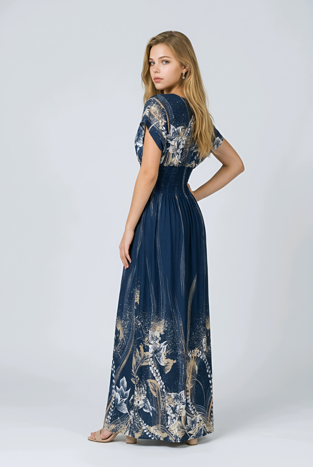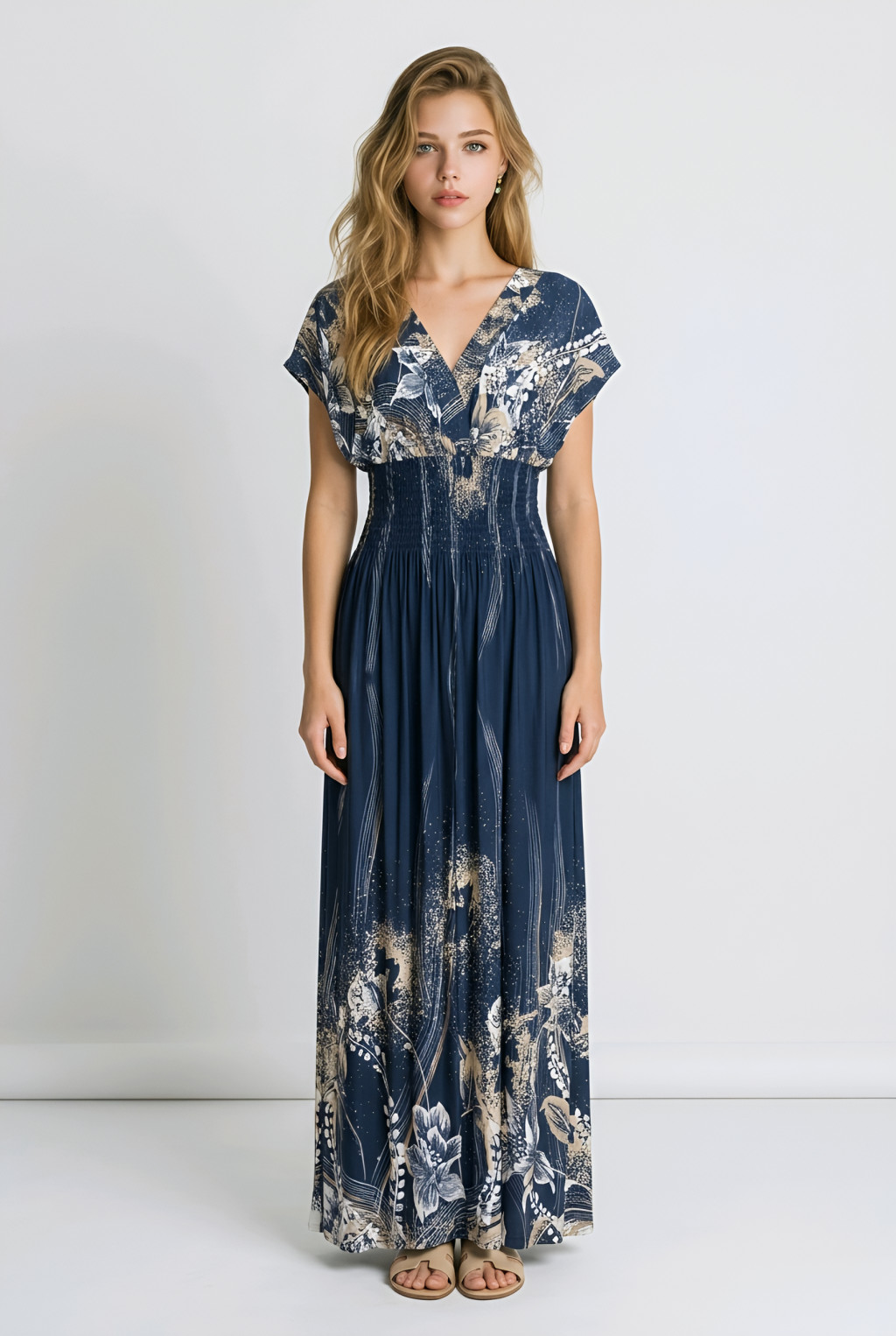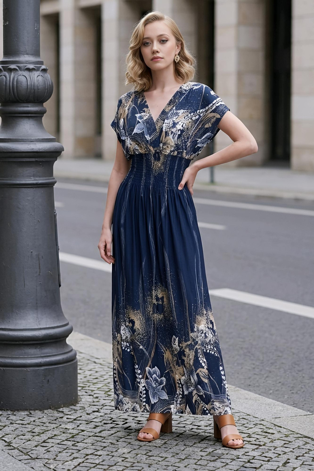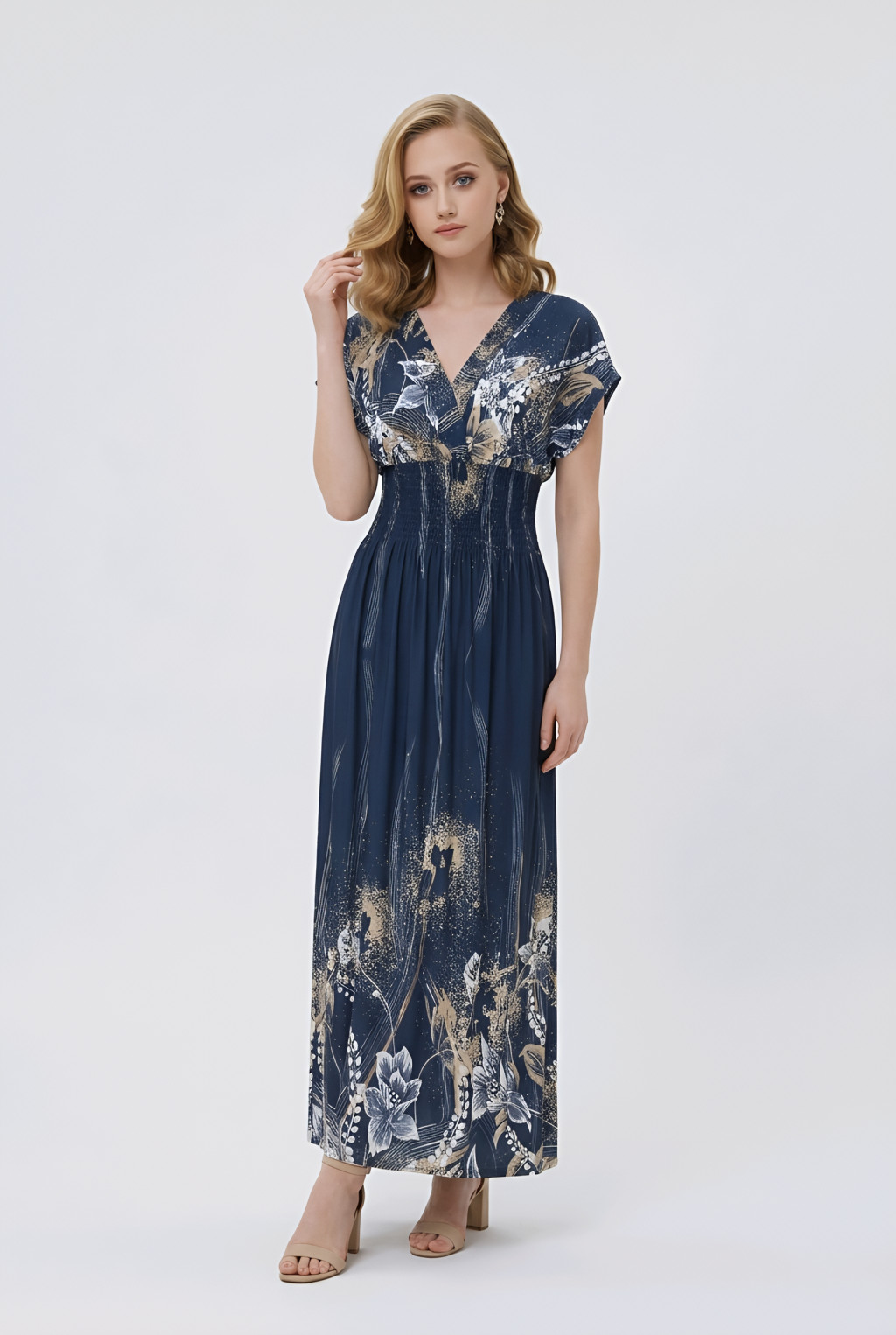 ÚJ ANNI ejtett vállú maxiruha - sötétkék