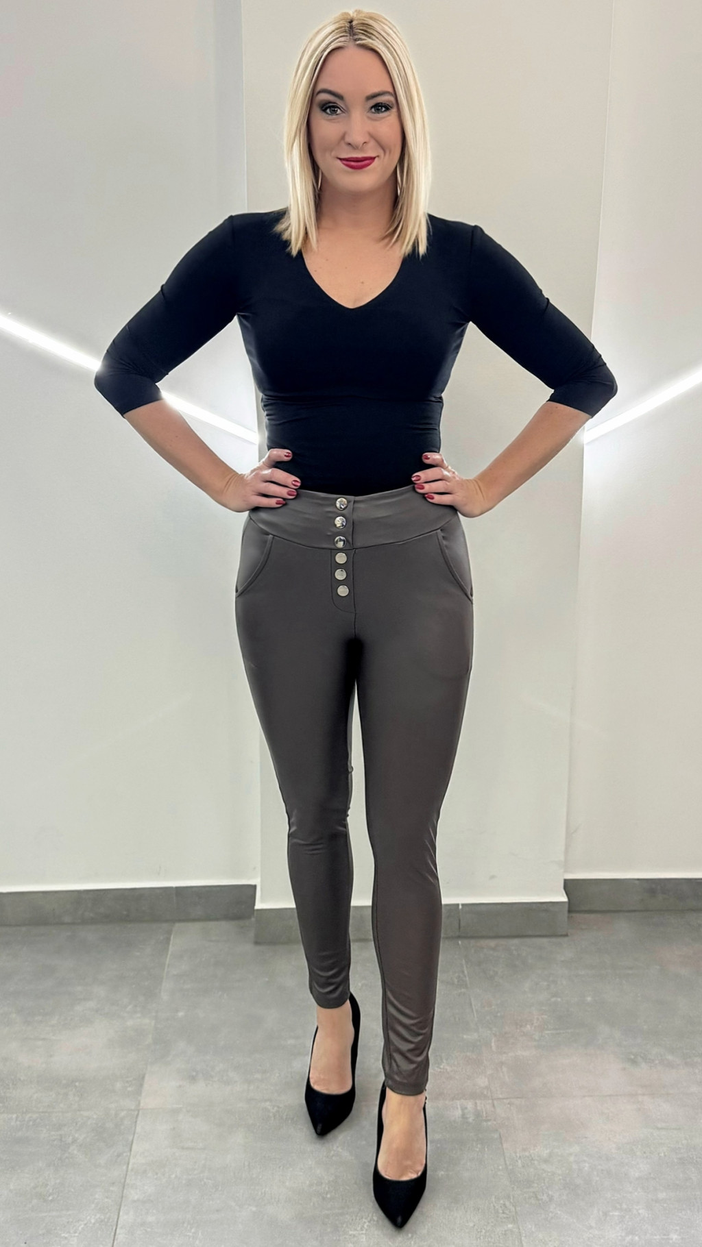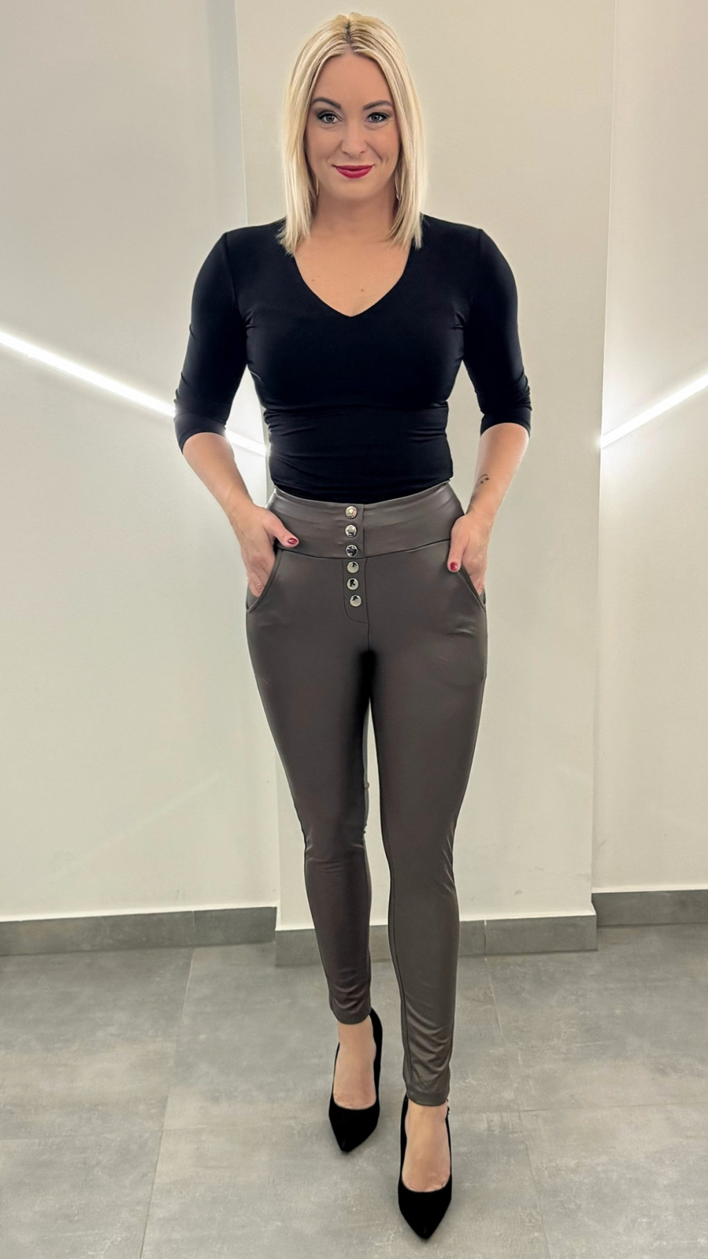 Ruhatárunk egyik elengedhetetlen alapdarabja ez a bőrhatású nadrág. Extra rugalmas anyagból készült!