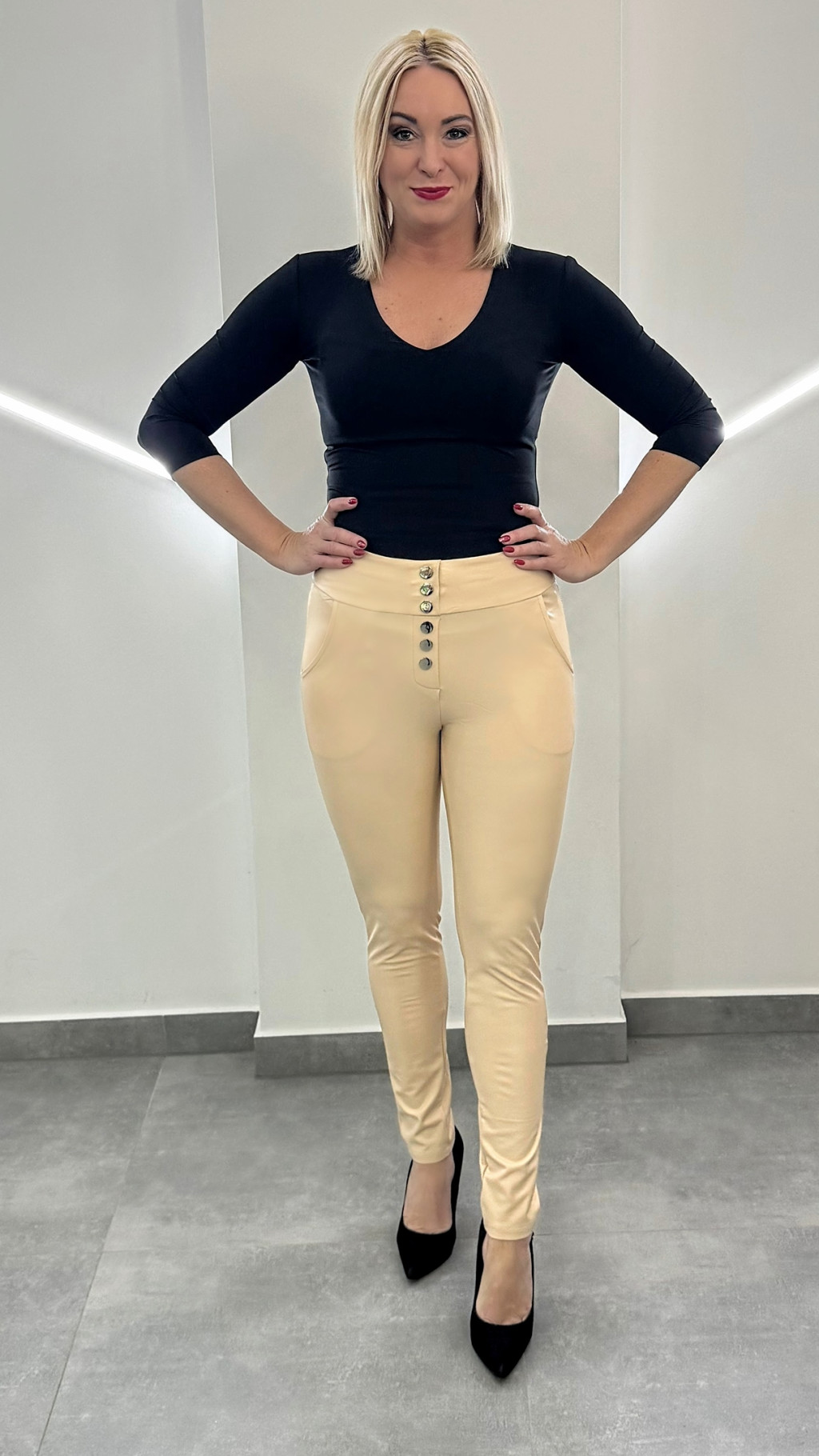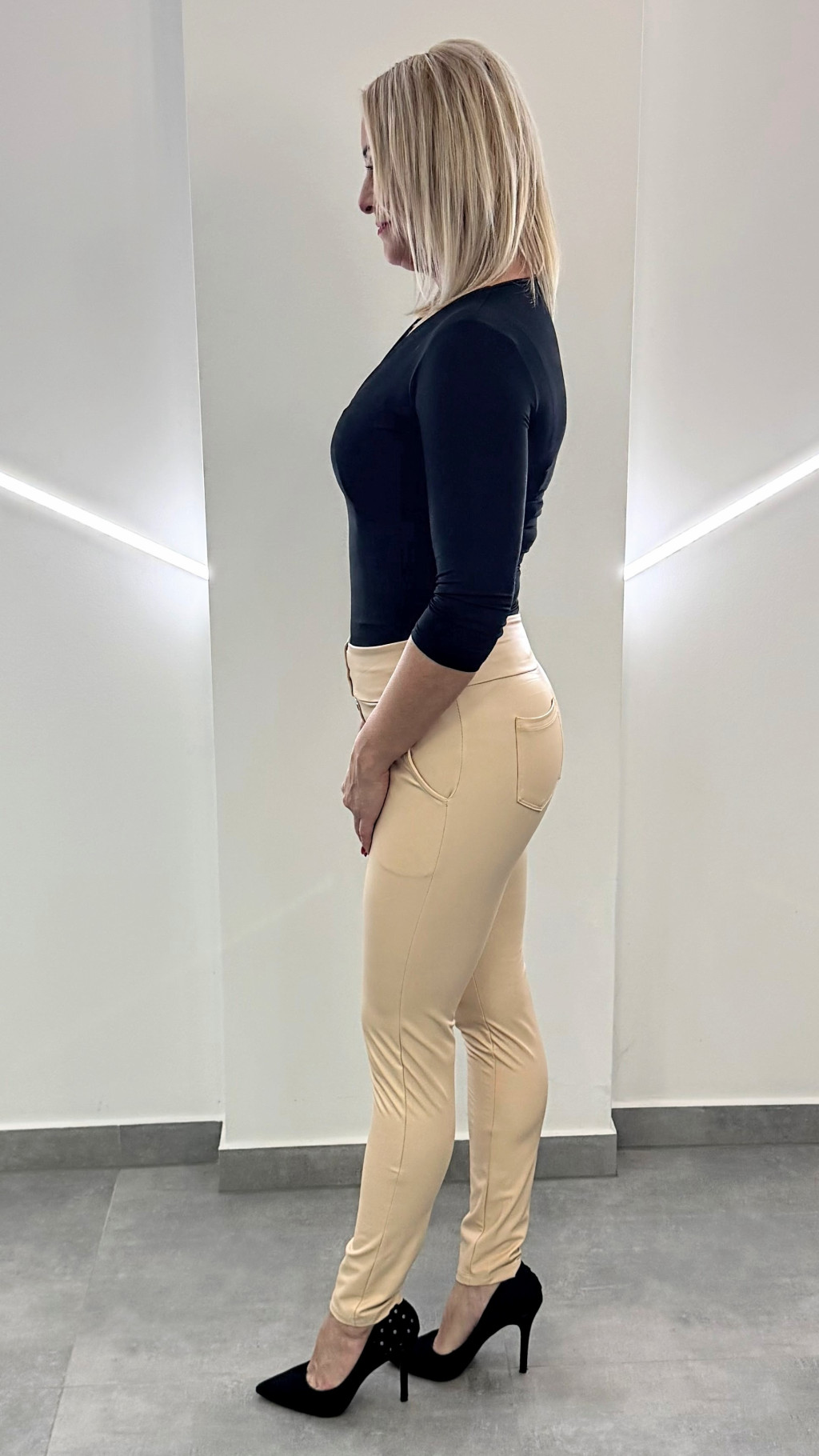 Ruhatárunk egyik elengedhetetlen alapdarabja ez a bőrhatású nadrág. Extra rugalmas anyagból készült!