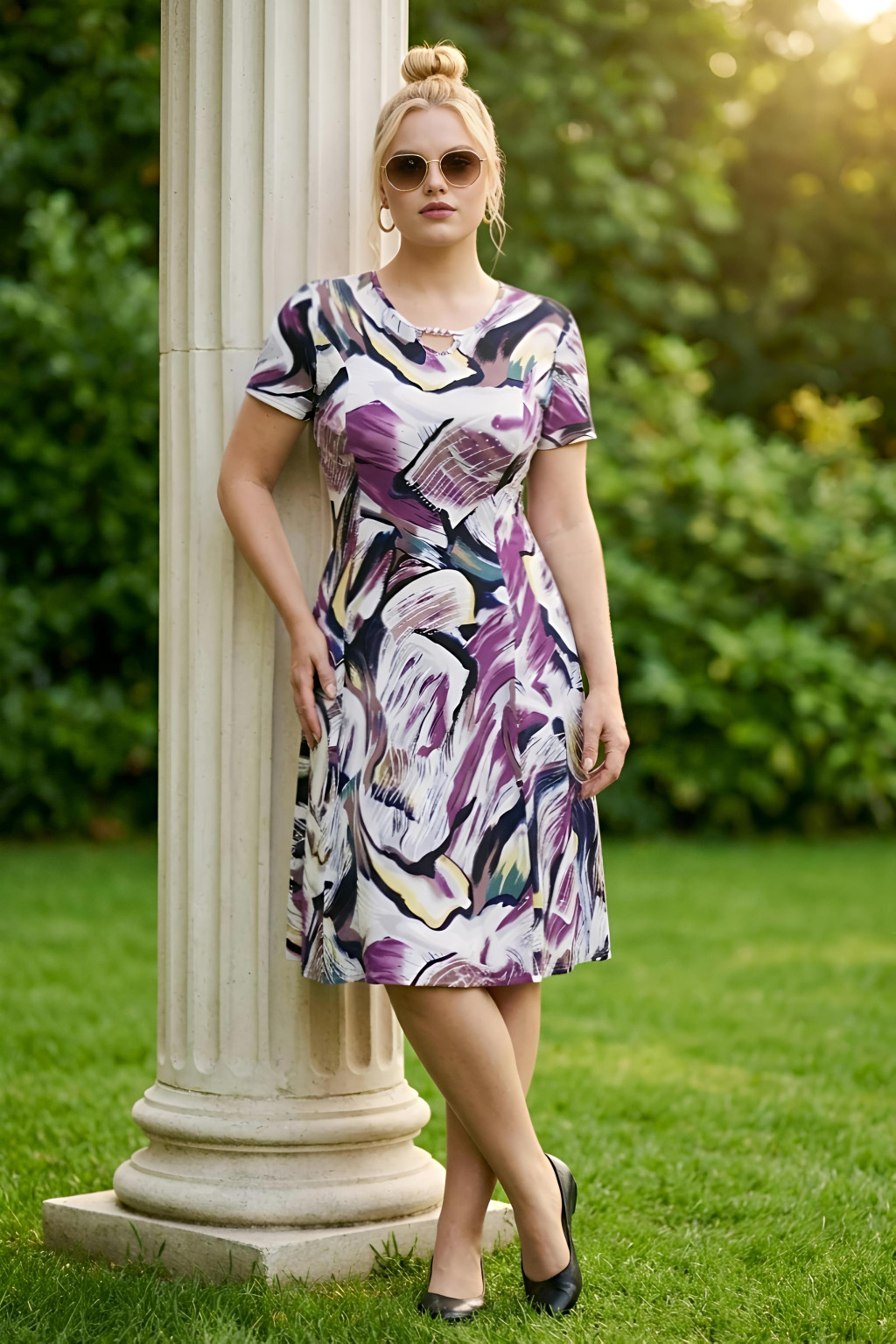 GIGI nagyméretű ruhánk egy gyönyörű, lenge jégselyem anyagból készült A vonalú nyáriruha.