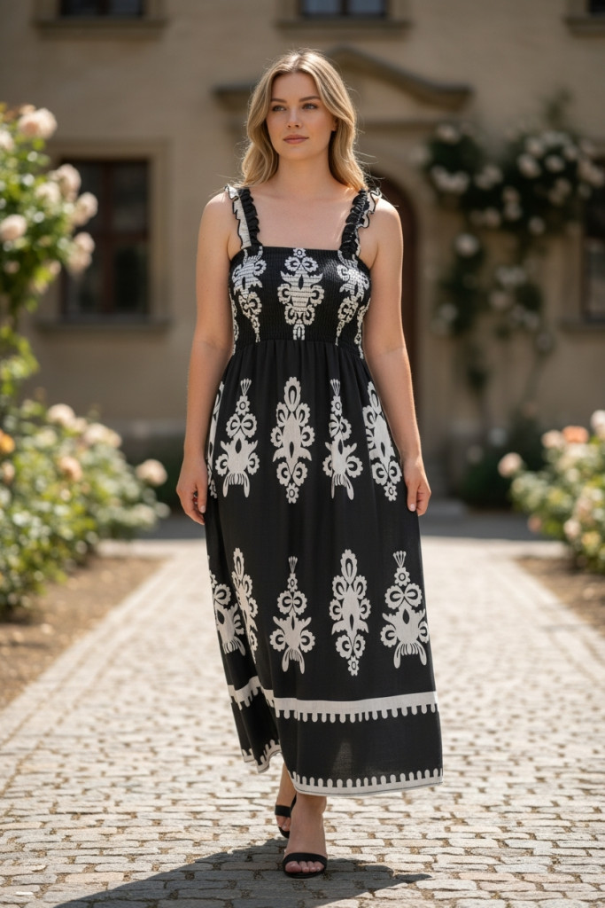 MADLEN vállpántos kiváló minőségű nyári vászon hatású anyagból készült