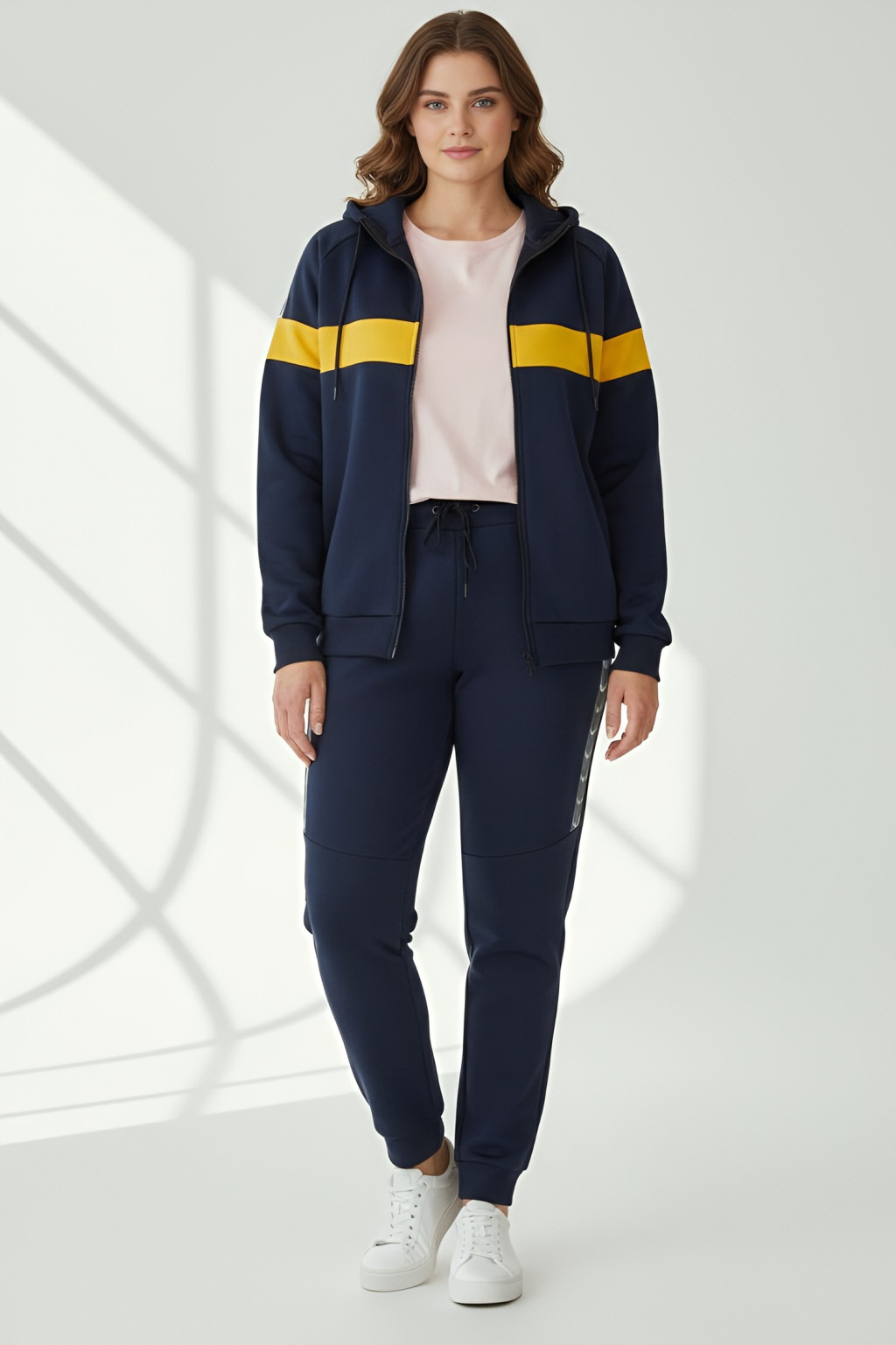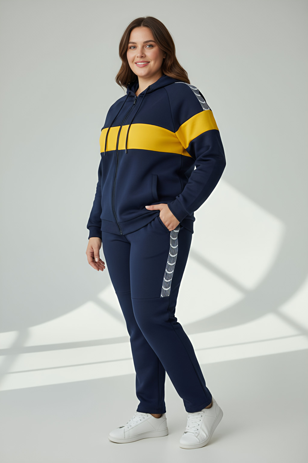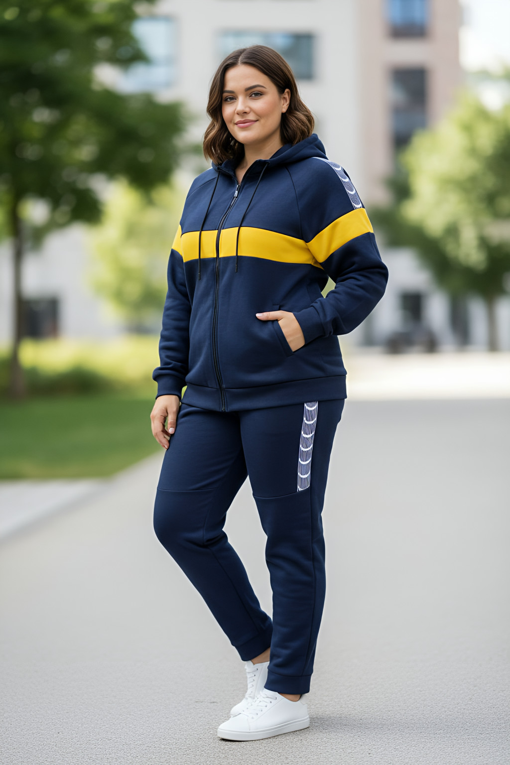 Extra nagyméretű VASTAG pamut/polieszter anyagból készült melegítő együttes, amely nagyon kényelmes lezser viselet. Anyaga vastag, puha, belül bolyhos, igazi őszi/téli viselet. A felső része cipzáros, valamint kapucnis, a nadrág része alul passzés, derékrésze zsinórral szabályozható.