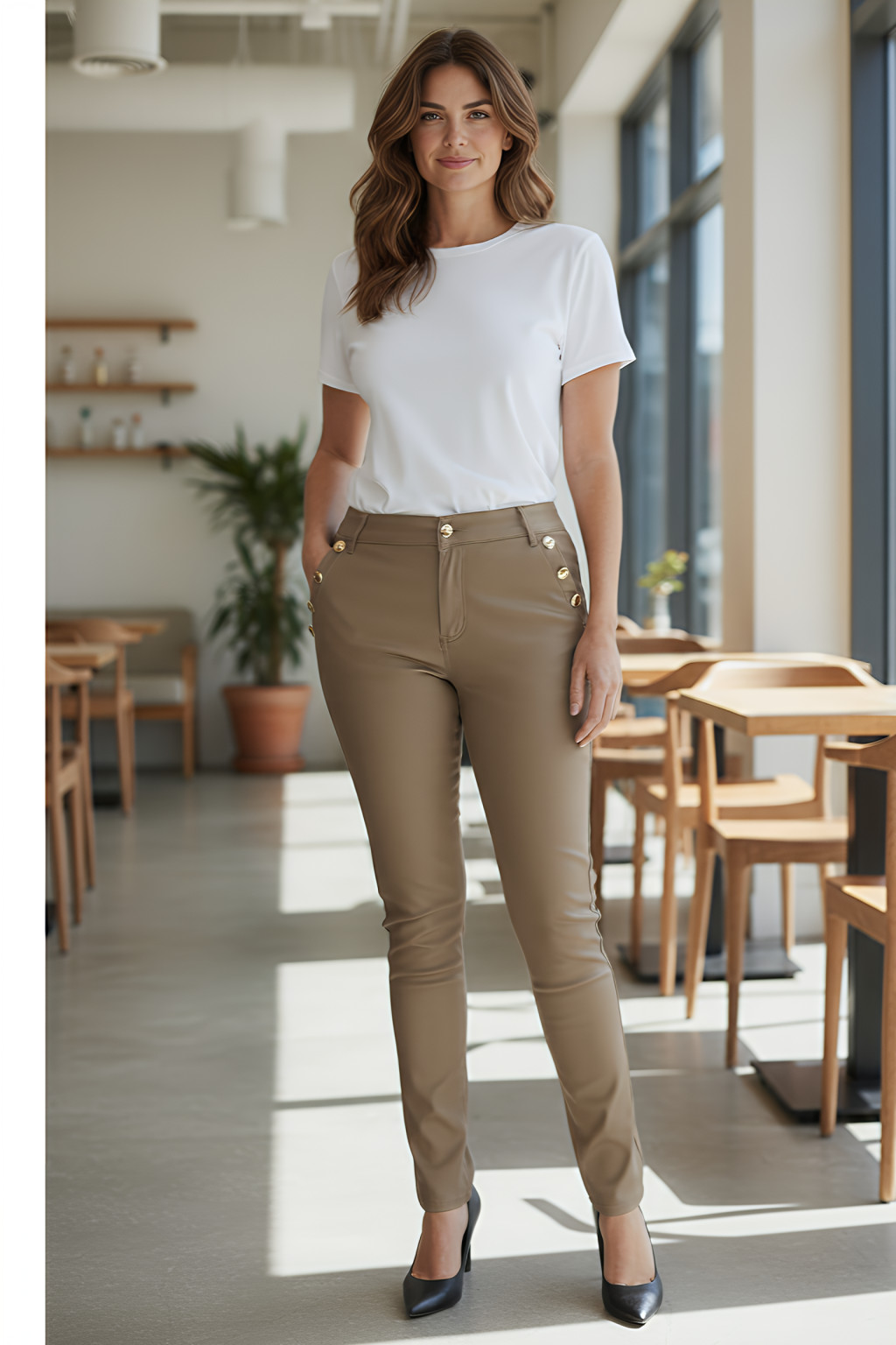 Ruhatárunk egyik elengedhetetlen alapdarabja ez a bőrhatású nadrág. EXTRA rugalmas anyagból készült!